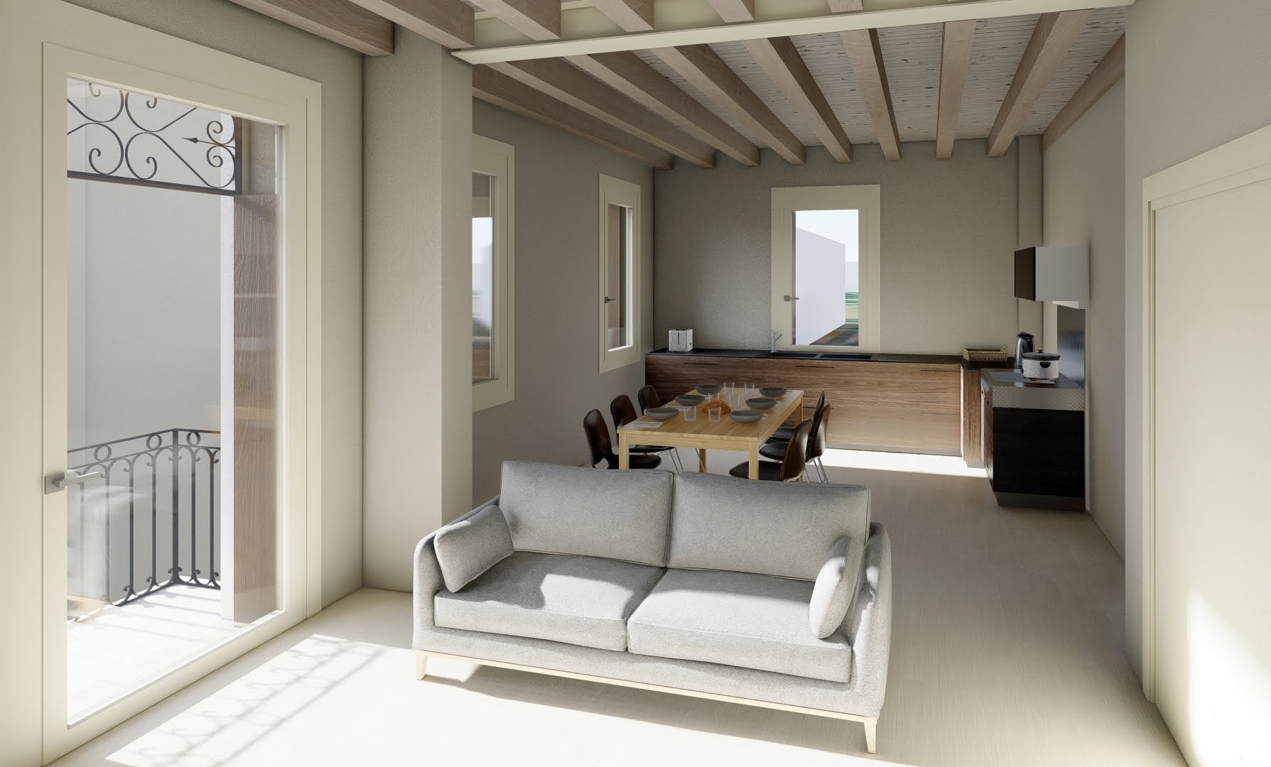 L’intervento, in ossequio alle norme del P.I., si attua nel rispetto della sagoma e linea di gronda esistenti. L’impianto originario viene rivisto per l’inserimento dei volumi tecnici e l’adeguamento strutturale, le forometrie vengono mantenute ed integrate nel rispetto degli allineamenti e dimensioni dell’esistente al fine di raggiungere idonei requisiti di areo-illuminazione dei locali abitabili.